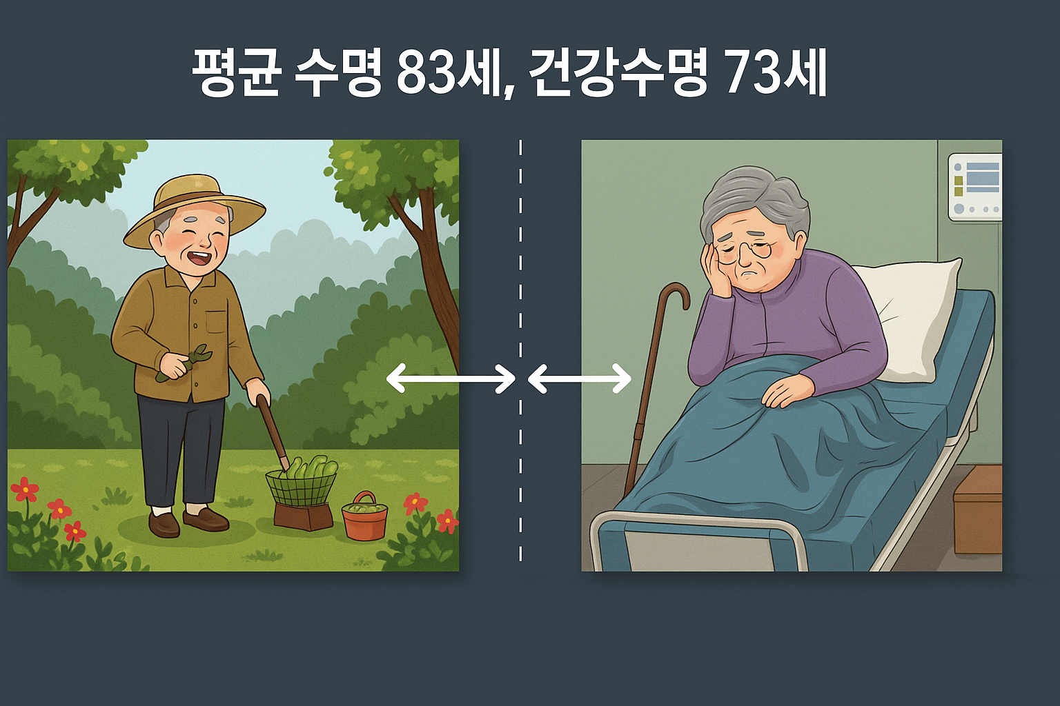 대한민국의 평균 기대수명은 83세, 세계에서도 손꼽히는 장수 국가입니다.